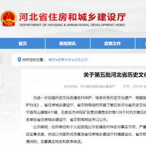 河北省住房和城乡建设厅最新公示!经各市推荐、现场调查和专家评审,拟将武安市淑村镇等4个镇、邯郸市永年区永合会镇王边村等138个村列为第五批河北省历史文化名镇名村候选名单,提请省政府审批公布。