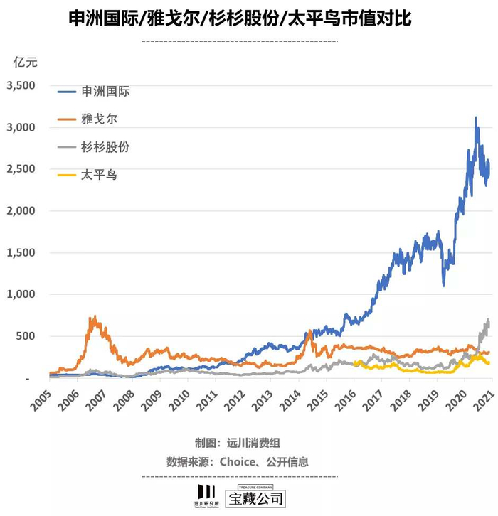 站在Nike、Adidas和优衣库的身后,申洲国际自2005年登陆港股以来屡创奇迹,市值最高涨到了3000亿港元,一度是港股服装行业的带头大哥,直到2019年后才逐步被安踏赶超。