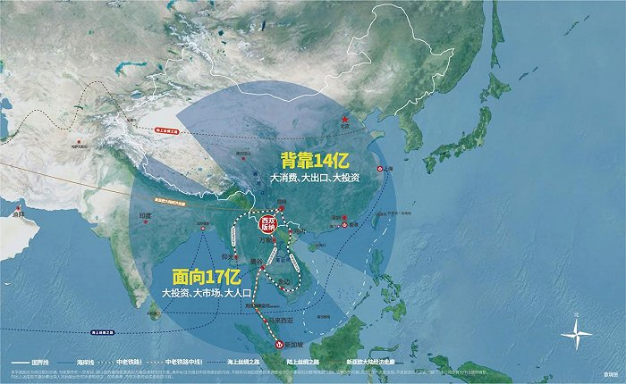 西双版纳背靠国内14亿大消费出口和投资市场,融合了全国文旅、康养、度假、出境游等消费力;长三角、珠三角产业转移、技术合作的产业力;以及国内金融市场活跃的投资力。除此之外,西双版纳还面向南亚、东南亚等17亿国外市场。包括活力型人口结构,日益增长消费需求,基建开发、产业发展等增长空间,以及矿、油、气等战略区位及优势资源。