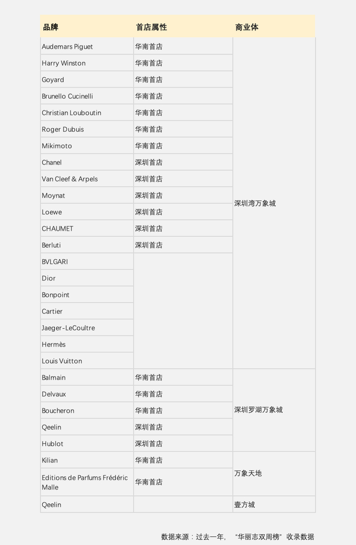 深圳首店有8家,分别是:Chanel、Van Cleef & Arpels、Loewe、CHAUMET、Hublot、Qeelin、Berluti、Moynat