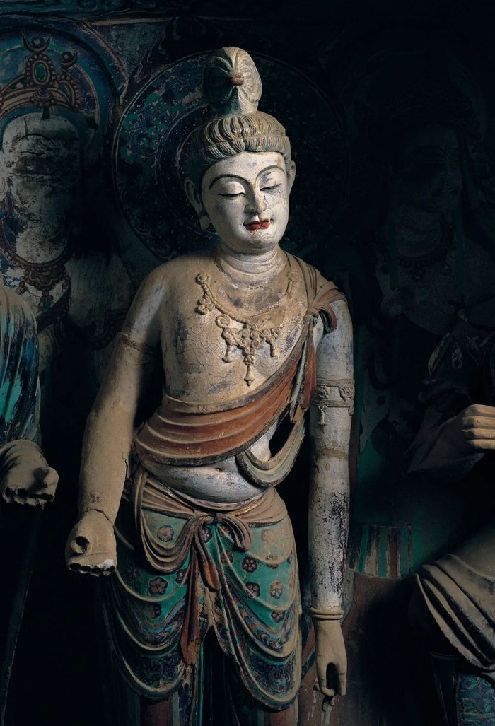 莫高窟第45窟 西壁龛内北侧 左胁侍菩萨 盛唐(吴健 摄/敦煌研究院供图)这种方式,比较接近于访问石窟的人的具体经验。
