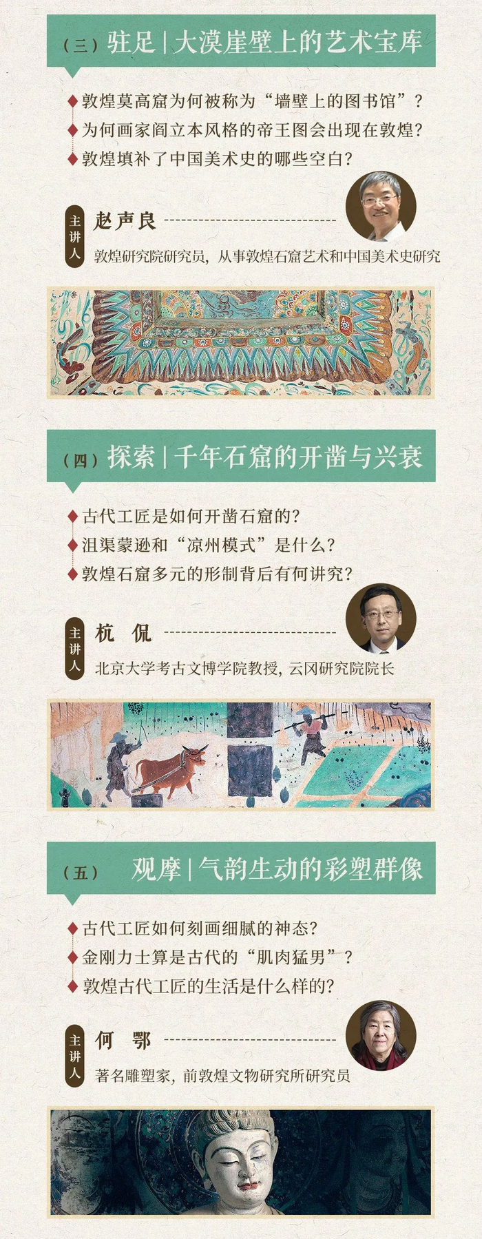 将10大观看敦煌重要维度,交给13位讲者细挖。带你穿过一千多年的风沙,将西域的胡风、北朝的融合、盛唐的华丽,一一讲给你听。