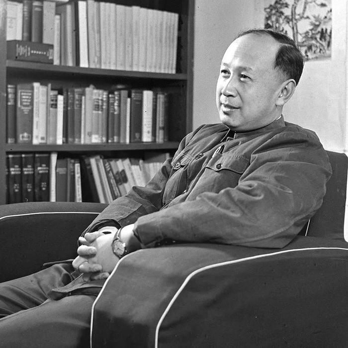 钱学森回国初期居住于中国科学院中关村宿舍。图为钱学森搬进中关村宿舍时的留影,茶几上放的是《人民文学》杂志——文艺理论研究是钱学森晚年“重理旧业”回归学术研究的一个重要领域。钱学森预言的立论依据与马克思主义理论颇为一致,即生产力与生产关系的矛盾、经济基础与上层建筑的矛盾,同时还蕴含着对科学社会主义进行探索研究的朦胧意识。