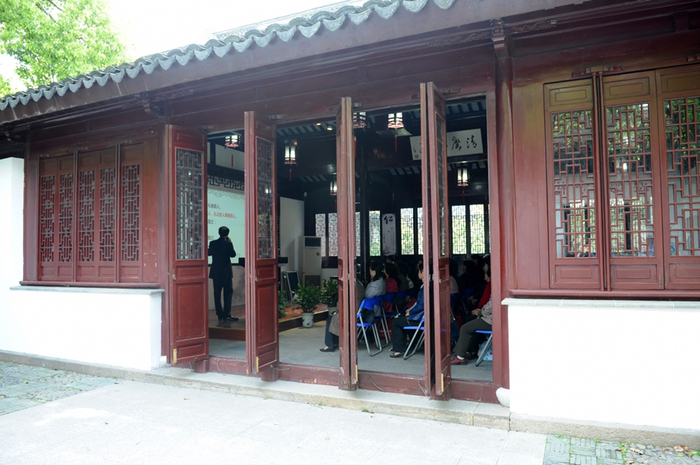 将现有道德讲堂为核心的半风亭院落(清代古猗园园主的生活空间)改为江南园林文化活动空间,用于开展美育课堂、国学讲堂、非遗制作等,深耕厚植江南文化、海派文化和红色文化,打造具有品质的园林书房,建成更有温度和人气的园林文化客厅,推动公共文化资源共建共享。