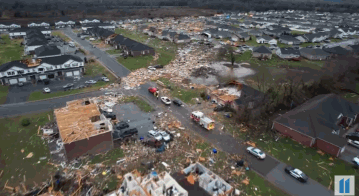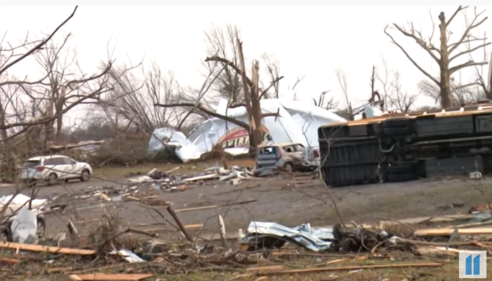 当地时间12月10日晚至11日凌晨,龙卷风等恶劣天气席卷了美国中南部多个州,包括阿肯色州、伊利诺伊州、肯塔基州、密苏里州和田纳西州等,出现了大约30场龙卷风。恶劣天气造成超过33万户家庭断电,超过2500万美国民众面临严重威胁。