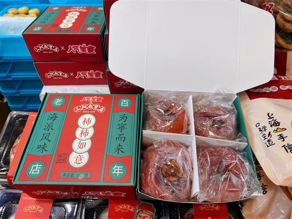 几天前,今年的新鲜柿饼在南京东路上的老字号三阳南货店上柜,除了散装产品,还多了一款名叫“柿柿如意”的节令礼盒。消费者觉得新奇:“原来柿饼可以这么卖!”比较散装产品和盒装产品,发现包装后的600克柿饼只比散装价格高了1.5元。有消费者当场说:“自己吃的买散装,再买几盒盒装的送人,口彩好。”