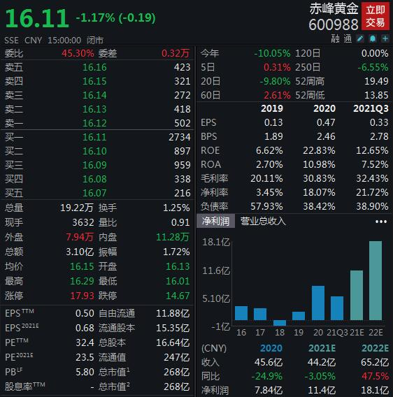 公告显示,赵美光目前为公司实控人,持股14.8%。截至12月10日收盘,赤峰黄金收跌1.17%报16.11元/股。(中新经纬APP)