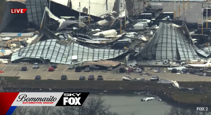 伊利诺伊州爱德华兹维尔的亚马逊仓库受龙卷风影响,发生大规模坍塌,一堵足球场长度的墙和仓库的屋顶倒塌,造成至少2名员工死亡,多人受伤,具体数字尚不明确。紧急救援人员称,亚马逊仓库倒塌是一起“大规模伤亡事件”。据悉,仓库内有多达50到100名员工,有数十名工人被困。