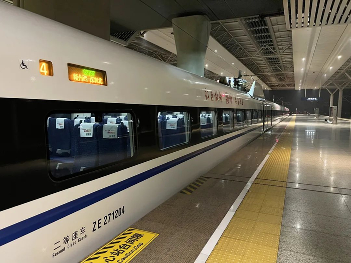 2021年12月10日9时整,G2197次和G4640次列车分别从赣州西站和深圳北站开出。