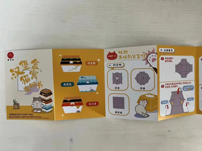 12 月 7 日,麦当劳的 10 万份“汉堡盒猫窝”才上线半天就卖空了。这个玩具随指定汉堡套餐赠送,唯一的限制在于购买渠道:顾客必须在麦当劳 App、微信小程序、饿了么 App 中,选用“麦乐送”外卖服务下单。这个猫窝也直接被冠名为“麦乐送猫窝”。