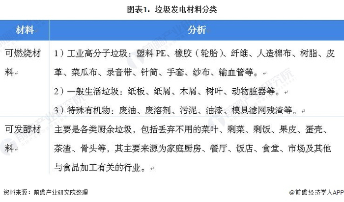 按照垃圾发电的发电方式,垃圾发电材料主要分为可燃烧材料和可发酵材料。