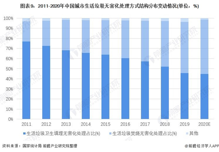 2、我国垃圾焚烧无害化处理占比逐年上升