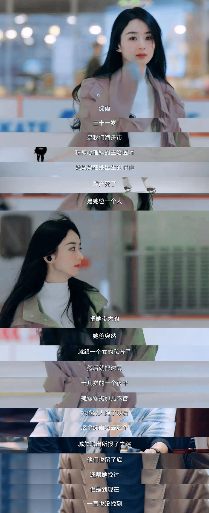 沈雨是个身世复杂、行为神秘的人物,母亲早亡,父亲在她十几岁时与人私奔,是她到派出所报案失踪的。大学时她读法医专业,工作后转行做心理医生。