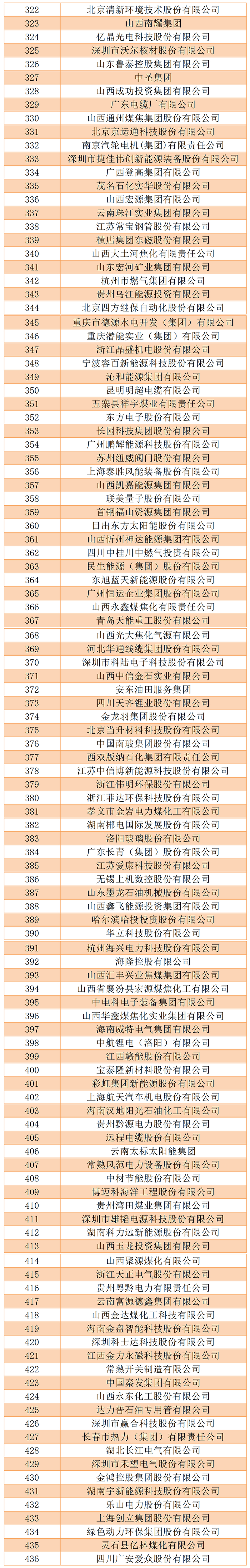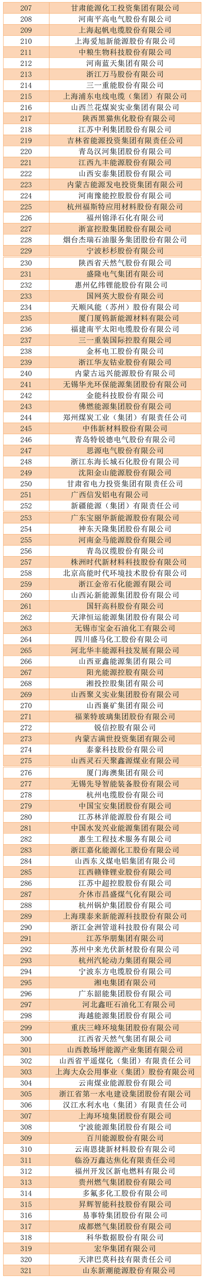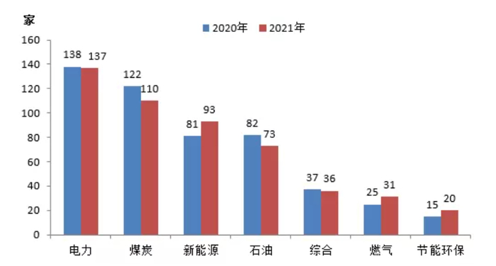 从数量来看,电力企业入围数量最多,其次是煤炭、新能源,第四是石油。