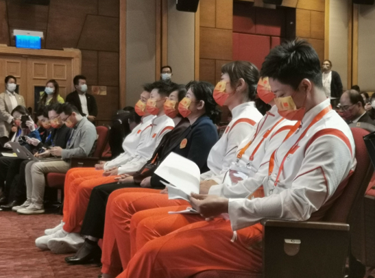 12月12日晚,正在广东珠海隔离的内地奥运健儿访港代表团部分运动员,接受了人民日报、新华社、中央广播电视总台、光明日报和澎湃新闻(www.thepaper.cn)在内20多家随团新闻媒体的视频连线采访,回顾谈及他们访港之行的感受、奥运感悟以及对即将到访澳门的心情。
