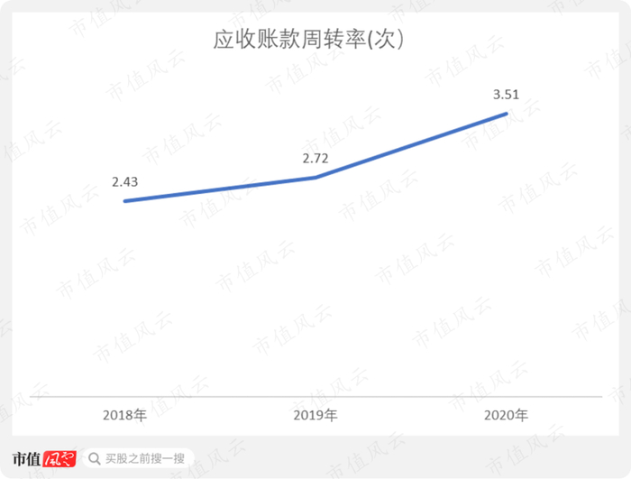 不过在2018-2020年期间,公司的应收账款周转率是不断上升的,从2.43次增长至3.51次,应收账款的回收风险总体可控。