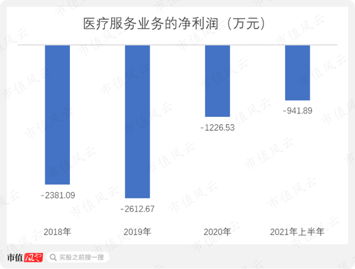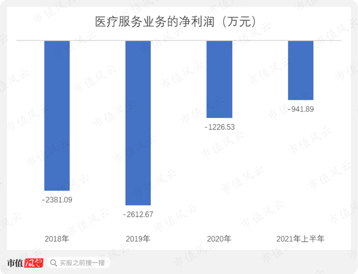 医疗服务业务的净利润从2018年开始就一直是负的,在所有亏损的业务中,医疗服务业务的亏损额度一直是最大的。