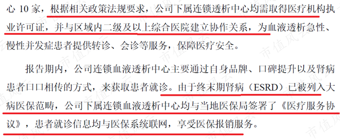 长期慢性病患者,如果老是往医院跑的话,不太方便。针对这个群体,公司自建线下的连锁血液透析中心,以方便患者就近做血液透析。