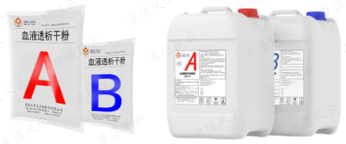 前文说过,透析液是一种电解质溶液,而透析干粉就是配制透析液的专用原料。不管是透析干粉,还是透析液,通常都是由A剂和B剂组成。