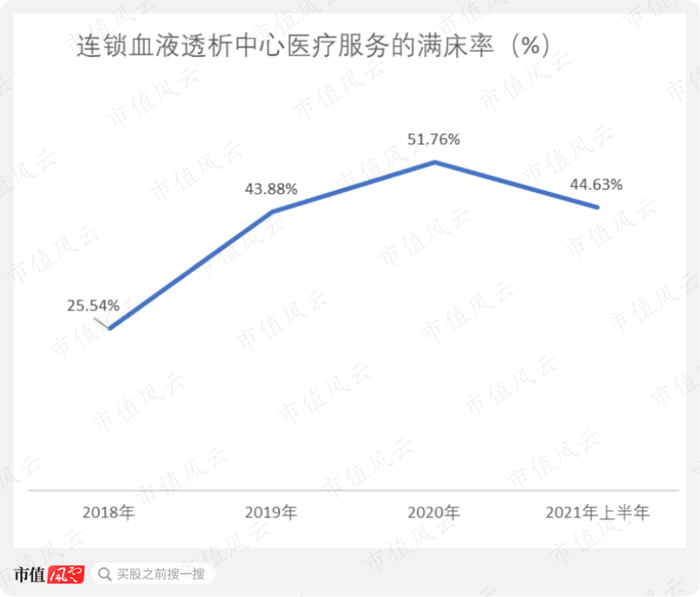 公司自建的血液透析中心最高满床率也只有50%左右,并不是很高。