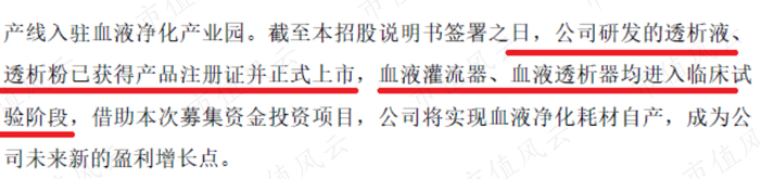 公司于2020年已经建好耗材生产线,目前,自产的透析液和透析粉均已正式上市,而血液灌流器、血液透析器也都进入了临床实验阶段。