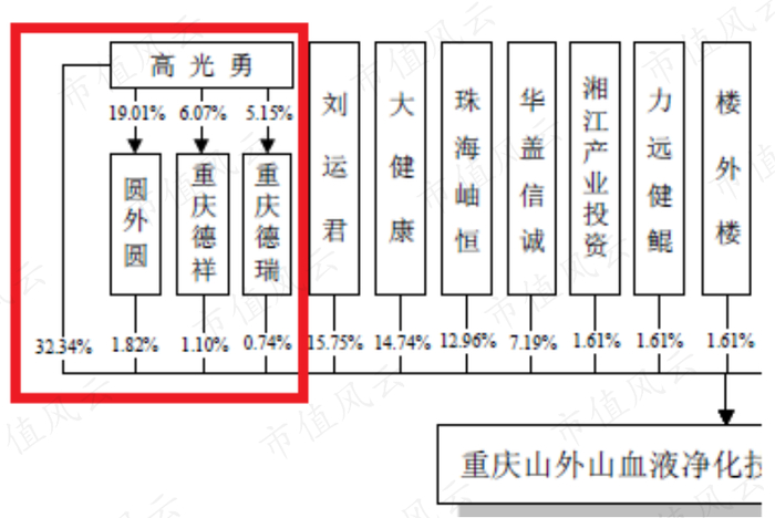 山外山血液,由高光勇于2001年创立。目前高光勇直接和间接持有山外山血液36.01%的表决权,是公司的控股股东、实际控制人。