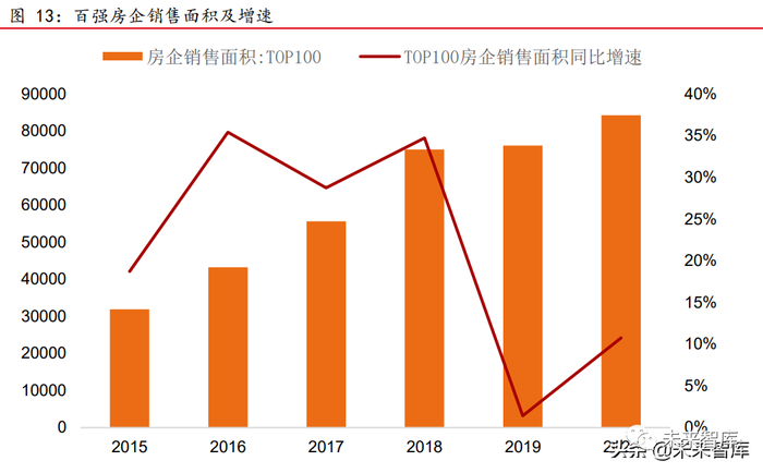 第一阶段为关联方输入时期,主要依靠关联开发商的新盘销售项目输入进物业公司。关联方输入面积的确定性较强,且品牌开发商项目区位相对优异,新盘项目可以保证极 高的利润率。2018 年以前百强地产销售面积增速保持在 30%以上,为其物业公司稳定输 入大量增量新盘。此阶段物业公司的关联方在管面积比重较高,业绩增长确定性较强, 利润率保持较高水平。