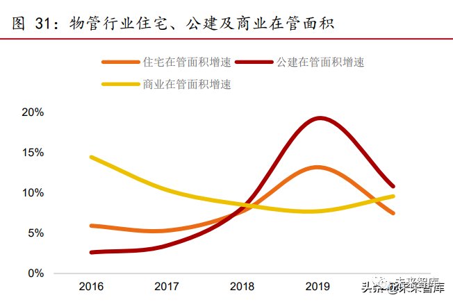 公建在管面积增速提升。随着“机关及企事业单位后勤服务改革”、“公共服务领域 鼓励社会资本投资和运营”等政策的推出,越来越多的物业公司向业务多元化发展,在 公建、商业、城市服务等领域攻城掠地。