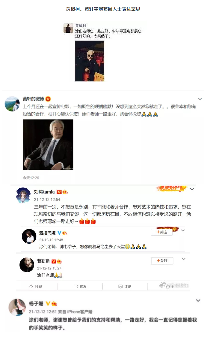 贾樟柯、黄轩等演艺圈人士表达哀思