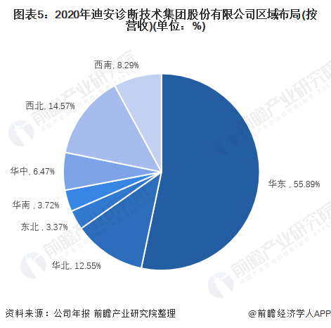 目前,迪安诊断网点布局多在我国华东、华北和西北地区,2020年,公司华东地区营收为59.52亿元,营收占比为55.89%;华北地区营收为13.37亿元,营收占比为12.55%;西北地区营收为15.52亿元,营收占比为14.57%。