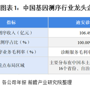 原标题:干货!2022年中国基因测序行业龙头企业分析——迪安诊断:业务领域持续拓宽 来源:前瞻产业研究院