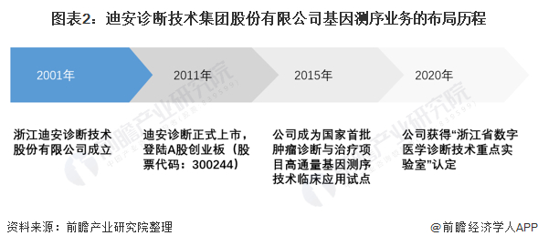 迪安诊断成立于2001年,于2011年上市,股票代码为300244,2015年,公司成为国家首批肿瘤诊断与治疗项目高通量基因测序技术临床应用试点,2020年公司获得“浙江省数字医学诊断技术重点实验室”认定。