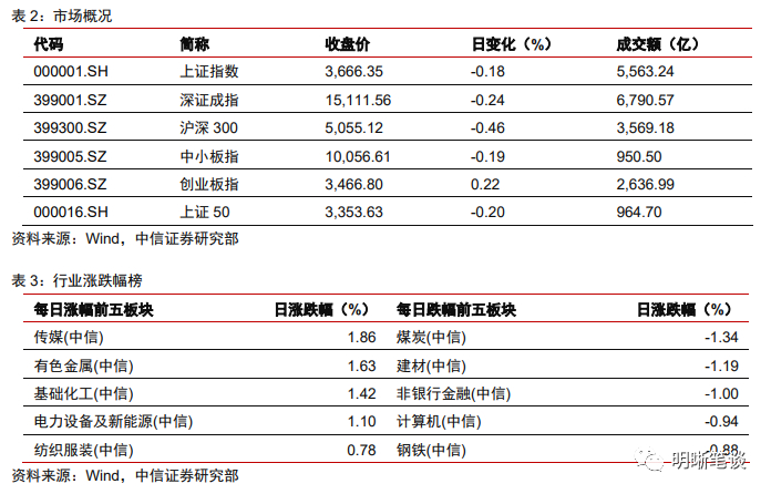 2021年12月10日,银存间质押式回购加权利率大体下行,隔夜、7天、14天、21天和1个月分别变动了-31.98bps、-6.88bps、-8.09bps、0.75bp和3.03bps至1.80%、2.14%、2.17%、2.09%和2.72%。国债到期收益率大体上行,1年、3年、5年、10年分别变动0.00bp、-1.57bps、-0.89bps、-1.00bps至2.27%、2.59%、2.72%、2.84%。12月10日上证综指下跌0.18%至3,666.35,深证成指下跌0.24%至15,111.56,创业板指上涨0.22%至3,466.80。