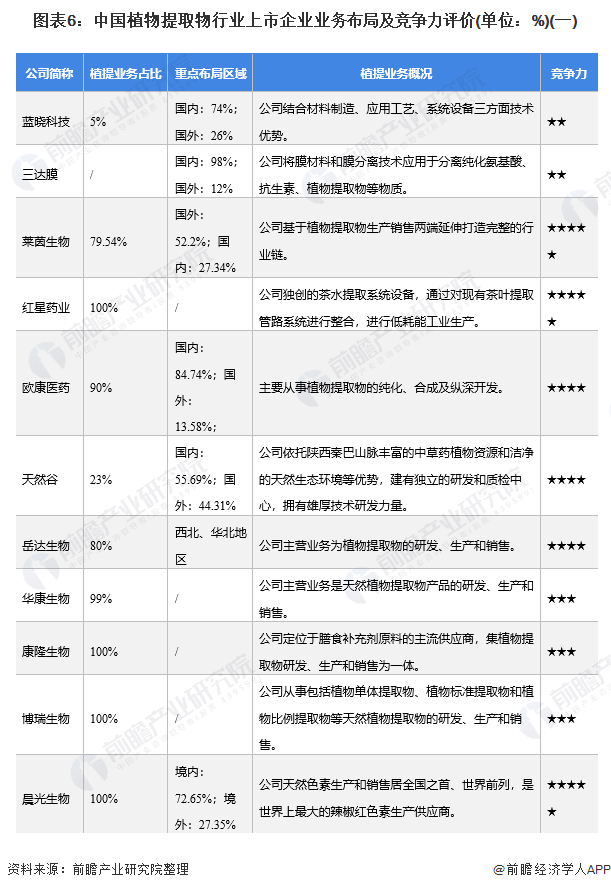 3、中国植物提取物行业上市企业布局及竞争力评价