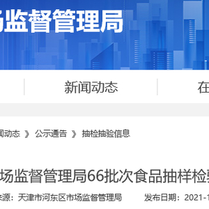 中国质量新闻网讯 2021年12月10日,天津市河东区市场监督管理局网站发布66批次食品抽样检验情况的通告(2021年第72号)。近期,天津市河东区市场监督管理局组织对66批次流通环节食品进行了抽样检验,经过检测,所检批次样品受检项目66批次合格。