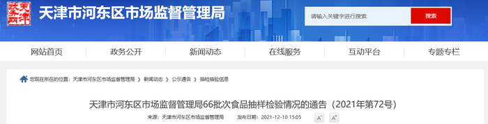 天津市河东区市场监督管理局公布66批次食品抽检情况:全部合格