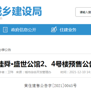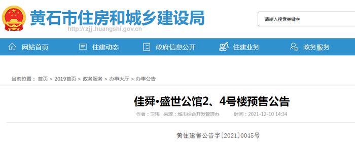 黄石市住建局发布佳舜•盛世公馆2、4号楼预售公告
