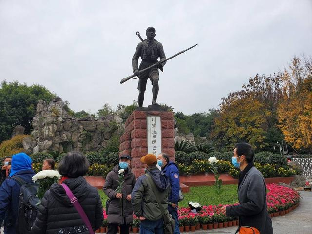 今天,是第八个国家公祭日。成都人民公园川军抗日阵亡将士纪念碑前,不少路过市民减缓脚步、或停留下来,向着纪念碑方向致敬、默哀。在众多驻足的人影之中,还有十余位抗日川军后人代表前来,献上一束束菊花,悼念抗战遇难同胞,缅怀阵亡将士。