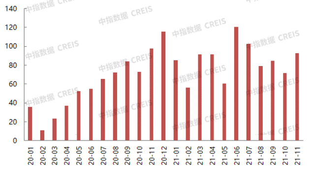 图:2020年-2021年11月北京商品住宅(不含保障房)月度供应情况
