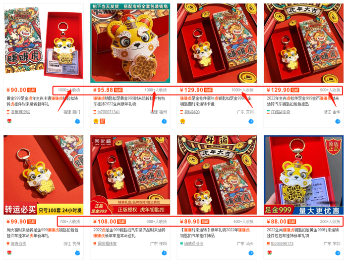 这些款式足金钥匙扣在各大平台,也是极具人气