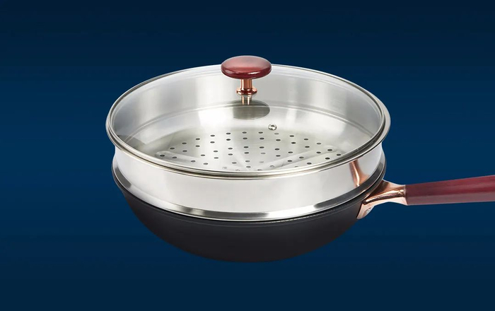 它的整体造型不像普通炒锅那么大,但容量却比普通锅大了15%,轻松满足3~5口之家。