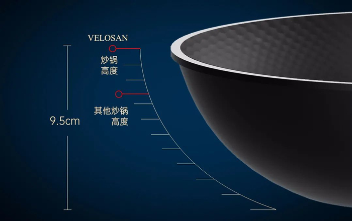 32cm的大口径,非常适合咱们中国家庭使用;9.5cm深,一次性炒5-6个人的菜量都没问题。