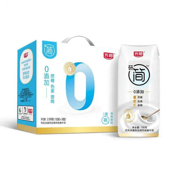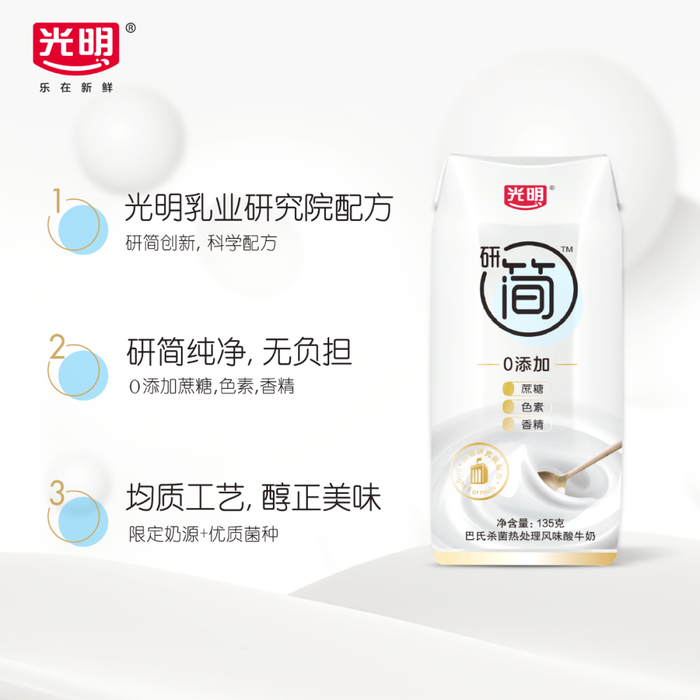 基于此,光明研简酸奶,采用0添加配方,0蔗糖、0色素、0香精,健康纯粹好酸奶,是注重健康人士的首选酸奶品牌!