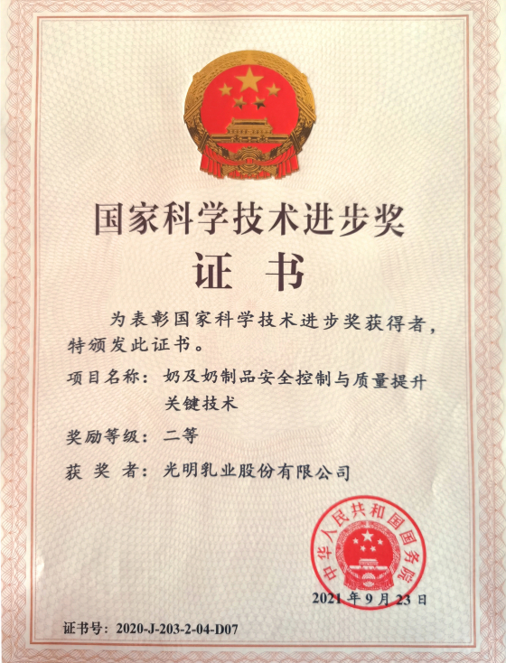 2021年11月,光明乳业再度荣获国家科学技术进步奖二等奖!这是光明乳业第五次拿下该奖项!也让光明乳业成为行业内荣获此至高荣誉最多的乳制品企业之一。
