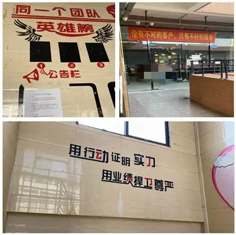 办公楼第四层都属于萌翻妮,在电梯口就有公告栏和打卡机,多处挂着诸多激励语:「流水就是脸面 业绩就是尊严 赚钱才是王道」、「没有不对的客户 只有不好的服务」、「用行动证明实力 用业绩捍卫尊严」,甚至提醒员工多想想自己的工资条、房租和家人等贴纸。办公室内像一个大型网吧,一排排的电脑屏幕上开着各种聊天软件,几十个小伙子戴着耳机坐在那里哒哒敲字。