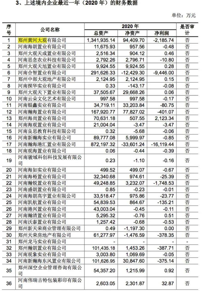 资料显示,中部大观地产的前身即黄河大观。另据瀚海大观官网资料显示,其营业执照指向“河南瀚海置业有限公司”,该企业由黄河大观持股100%。