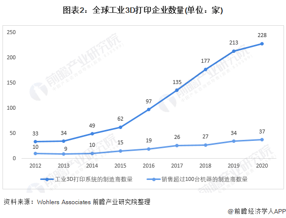 供给:2020年全球工业3D打印系统制造商数量达到228家