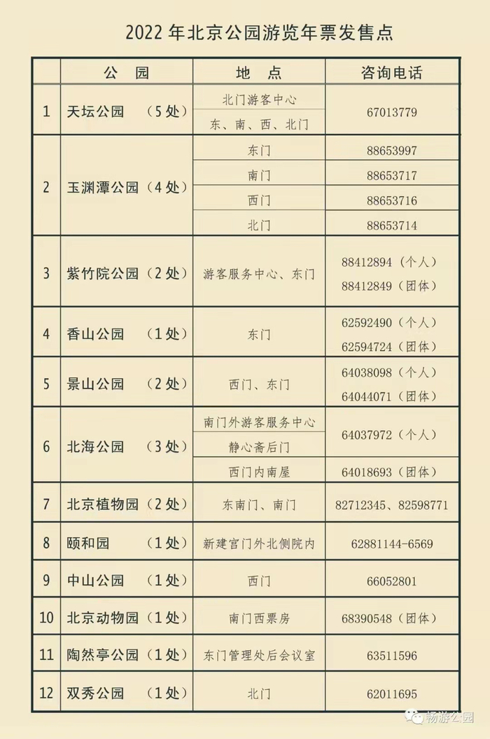 北京市公园管理中心刚刚发布信息,从明天(12月15日)开始至2022年1月15日,2022年公园游览年票正式发售。市民可在市属11家公园及双秀公园共计23处年票发售点买到年票。
