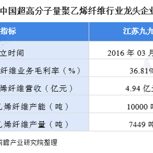 本文核心数据:超高分子量聚乙烯纤维行业龙头企业产品情况、产能/产量、经营业绩等