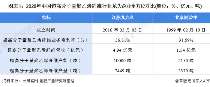 1、中国超高分子量聚乙烯纤维行业龙头企业全方位对比